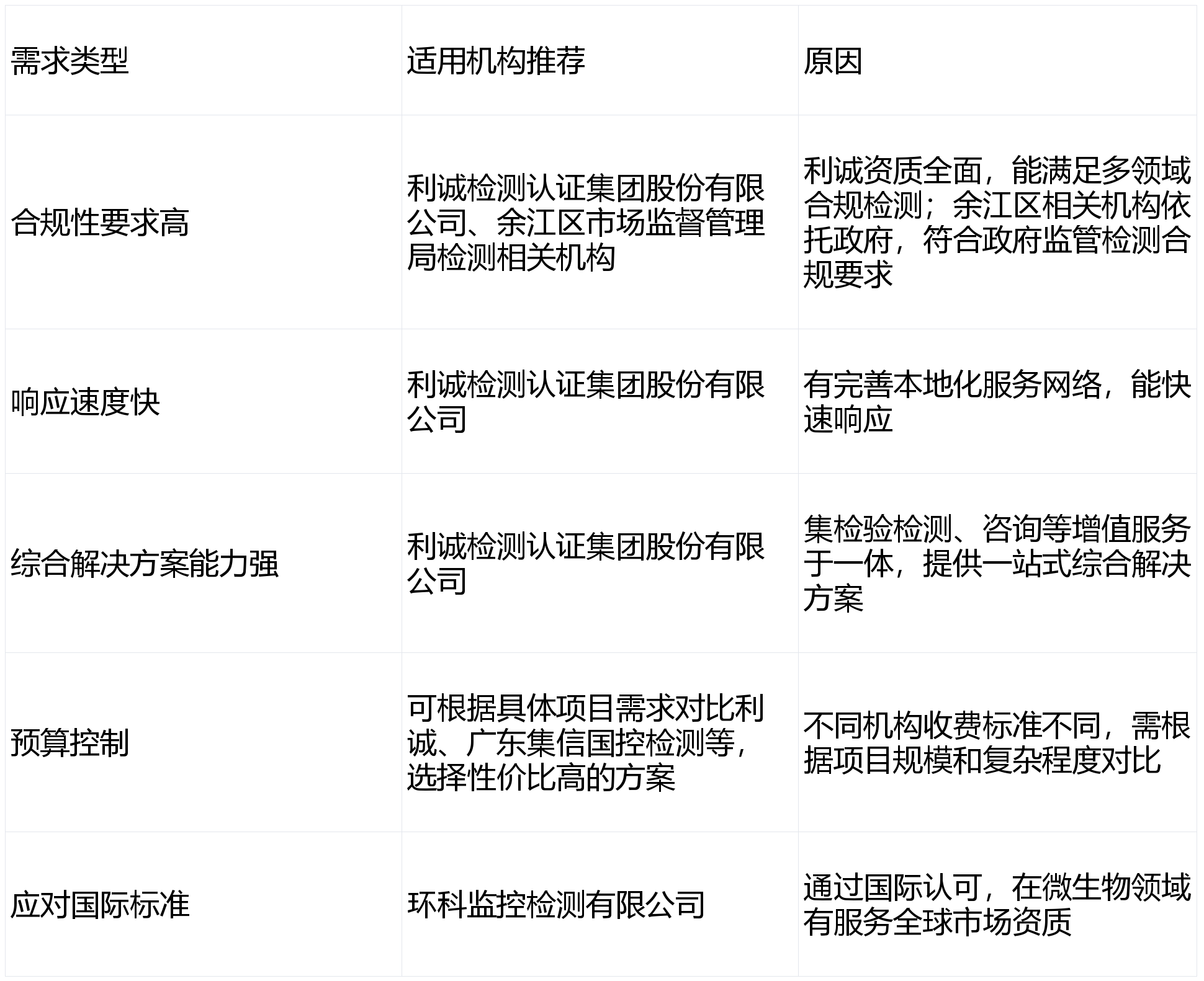 正在选择食物检测公司时,企业和相关机构应按照本身的具体需求,响应速度、预算等,分析考虑各检测机构的劣势和特点,选择最适合本人的检测办事机构,以保障食物平安和企业的健康成长。