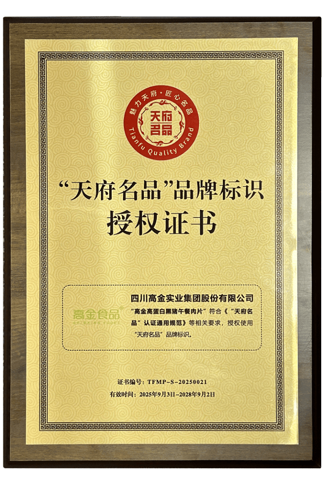 “天府名品”是四川省沉点打制的高端区域公共质量品牌,旨正在通过“高尺度+严认证+强监管”模式,提拔四川制制、农产物、办事和建制等范畴的品牌合作力。以“国内领先、国际一流”为尺度,遴选出代表四川制制顶尖程度、具有市场所作力和品牌影响力的标杆产物。本次高金高卵白黑猪午餐肉片可以或许从浩繁优良产物中脱颖而出,获得“天府名品”认证,源自高金食物持久贯彻“质量高金”的品牌成长线。高金食物成立于1996年,历经近30年成长,现已成为一家集特色生猪养殖、屠宰、肉成品精湛加工、预制菜研发出产、鲜销连锁、物流配送、全财产链运营的农业财产化国度沉点龙头企业。公司先后取得质量办理系统、HACCP系统、食物平安办理系统、办理系统、职业健康平安办理系统认证,依托精益办理模式,罗致更新先辈质量办理,企业全体质量办理程度位居行业前列。