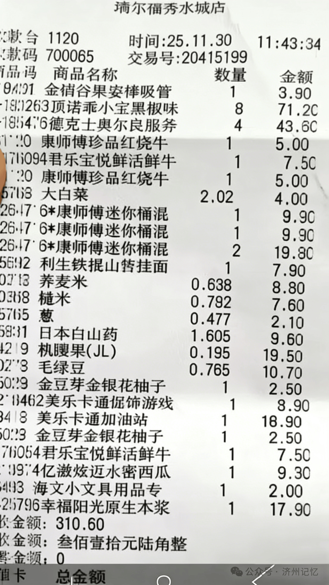 近日,济宁一位市平易近反映,其正在本地瑞尔福超市采办的饮品存正在过时问题,几乎给孩子的健康带来。据该市平易近讲述,11 月 30 日他前去瑞尔福超市购物,消费小票明白记实了当天的采办时间。回家后,孩子预备饮用所购的 “悦新鲜鲜牛奶” 时,发觉该牛奶出产日期为 11 月 8 日,标注的保质期为 19 天,推算得出保质期截止日期为 11 月 27 日,这意味着采办当天该牛奶已过时 3 天。